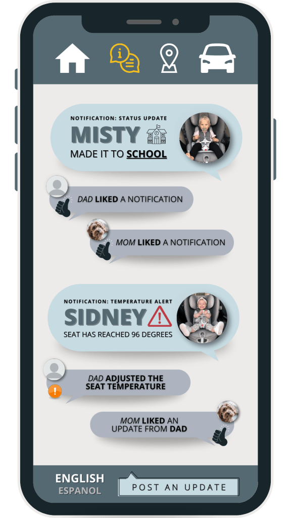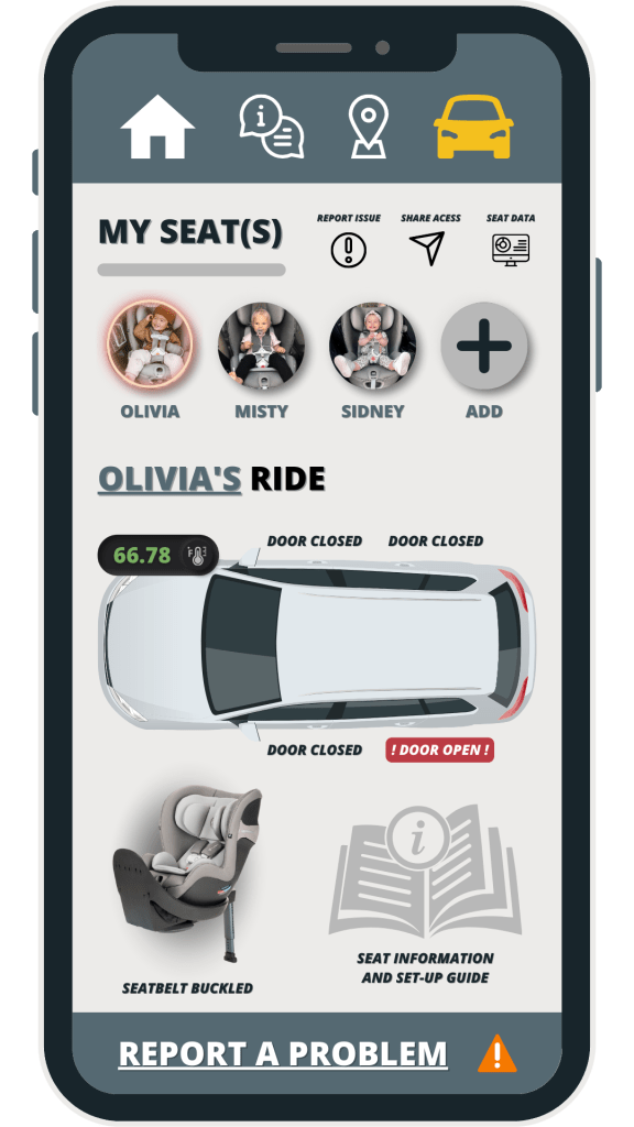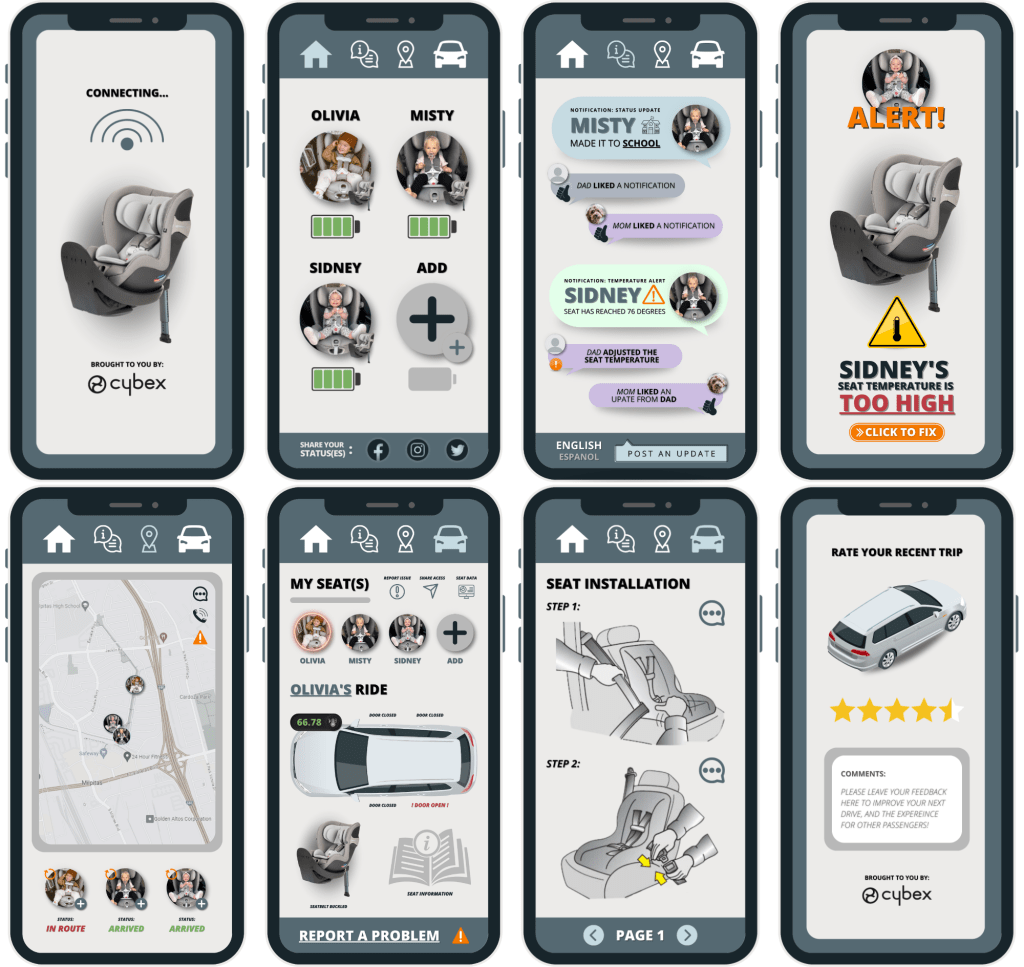 This innovative design aimed not only to provide peace of mind for parents by ensuring real-time safety updates during car journeys, but also to create a more user-friendly experience by allowing easy access to historical data on the child’s comfort and safety.